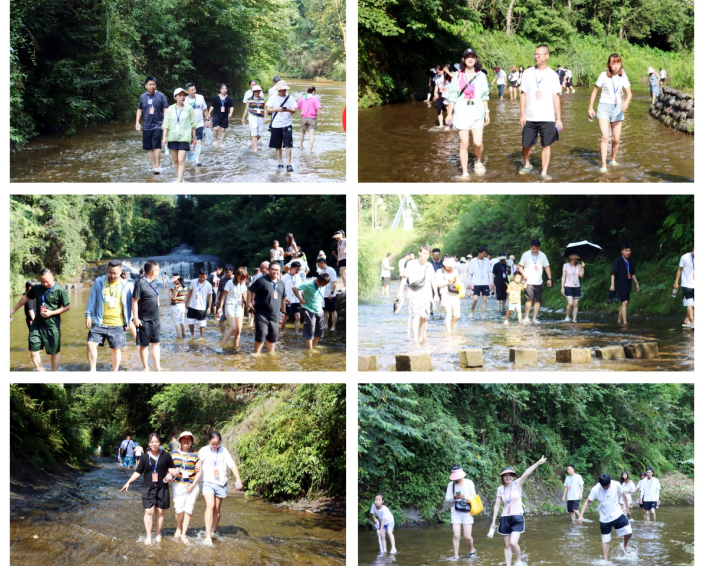團(tuán)隊(duì)成員一行從觀沱下渡下船后,經(jīng)過1公里山間林蔭小道,開啟長略7公里的“中國最長石板河”踩水體驗(yàn):大家欣然下水后發(fā)現(xiàn),石板河一石沉底,托起淺淺清流,或急速、或緩流、徐徐下行、人水合一、動態(tài)接觸,讓人全新體驗(yàn)感十足;兩岸奇峰夾峙、林木森森,成就天下石板河之絕唱。大家先后經(jīng)過一碗水、一顆松、碧水長灘、響灘子瀑布、出谷食坊、水簾飛虹、水舞山間、戲水戰(zhàn)場等景點(diǎn),在溯溪戲水的樂園、避暑游樂的天堂中,讓人縱情山水,盡享水趣。然后,乘坐體驗(yàn)飛天魔毯穿越叢山峻嶺之間,遙望七彩玻璃水滑道的蜿蜒飛馳,感受大自然鬼斧神工和天下穹隆的瑰麗之美。
